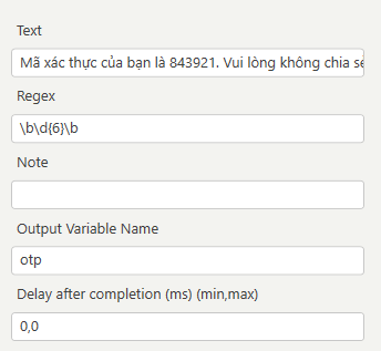 Ta dùng biểu thức: `\b\d{6}\b` để lấy chính xác đoạn **6 chữ số** là **843921**.\